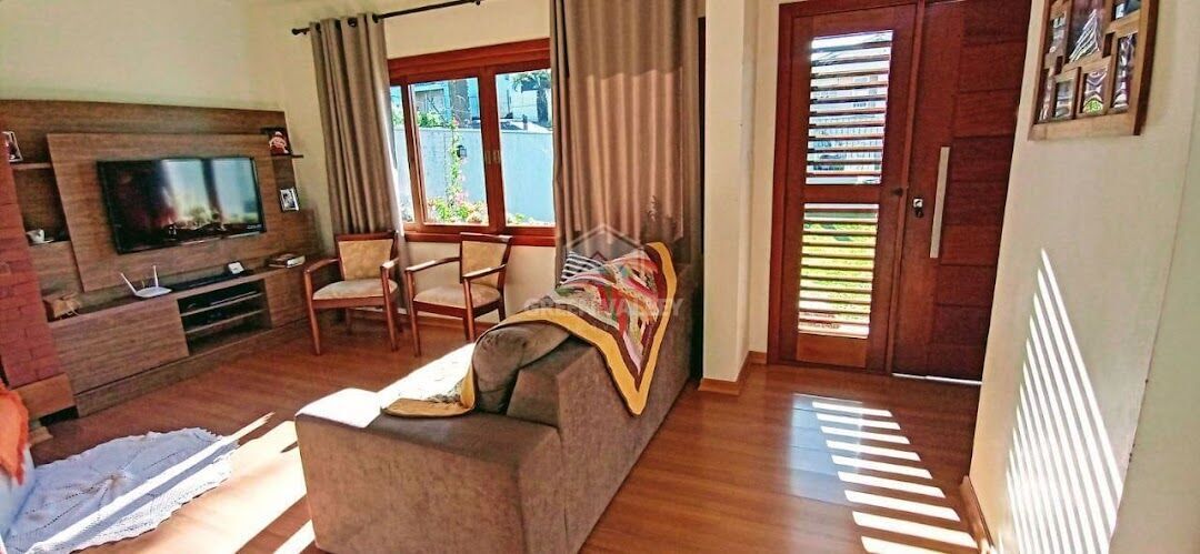 Excelente residência com localização privilegiada, situada a apenas duas quadras da Catedral de Pedra, no Centro de Canela. O imóvel está edificado em um terreno de 300m², com 120m² de área construída. Conta com amplas salas de estar e jantar com lareira, cozinha americana, lavanderia, churrasqueira, dois dormitórios (sendo um no pavimento térreo e uma suíte com closet no segundo andar), um banheiro social e escritório. Totalmente mobiliada com móveis sob medida, dispõe ainda de canil e garagem com capacidade para dois veículos. A propriedade é toda murada e possui portão eletrônico.